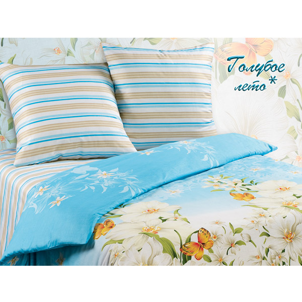 - Постельное белье Поплин Семейное АльВиТек Голубое лето